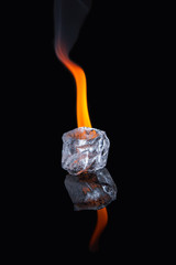 Ice cube with flame on shiny black surface | 160 | 240 | |