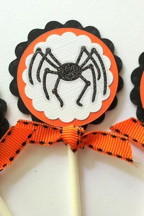 Halloween Cupcake Toppers, Halloween Party Decorations, Spider Cupcake Toppers, Set of 12 | 384 | 576 | |