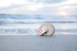 nautilus shell on beach, pale sunrise light and tropical sea | 110 | 73 | |