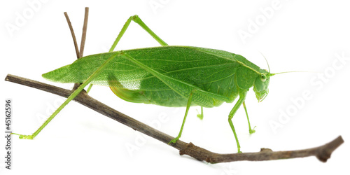 Green grasshopper on a twig over white background | 500 | 251 | |