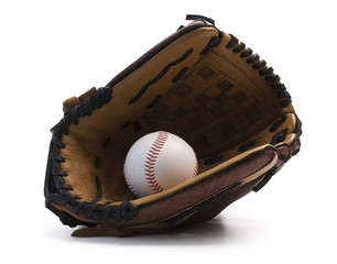 Closeup of baseball glove holding baseball on white | 306 | 240 | |