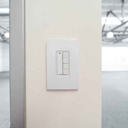 White 5-button switch mounted on an off-white beam in the middle of an empty open office | 384 | 384 | |
