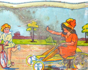 1930's Tin Toy Tea Tray, Art Deco children on bikes, go cart. | 340 | 270 | |