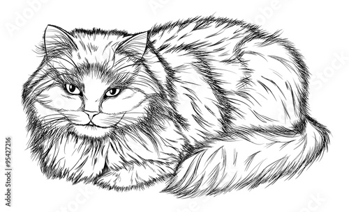 Poster Croquis dessinés à la main des animaux lying cat, black and white pencil drawing | 500 | 306 | |