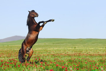 beutiful brown horse rearing on pasture | 359 | 240 | |