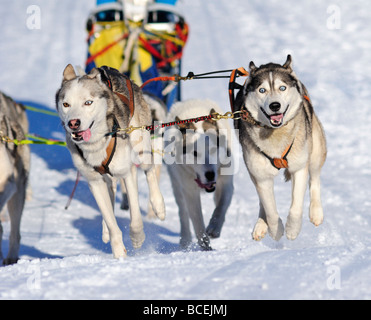 Details of a sled dog team in full action heading towards the camera - Stock Photo | 371 | 320 | |