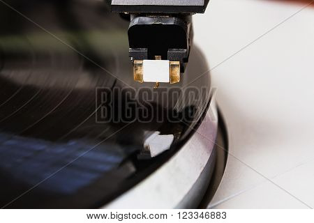 turntable record player in focus. Analog audio technology useful for DJ, hipster or audio enthusiast. | 450 | 320 |