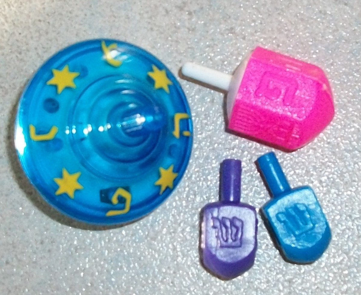"Round musical sevivon and pink sevivon are from Israel. You see letter ""Pey"". Purple and blue dreidels have letter ""shin"", we got them in America" | 469 | 384 | |