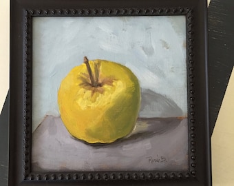 Golden Apple - 7x7 in Frame - Original Art by Renee Brennan Art - Apple art, kitchen art, fruit art, apple painting, | 340 | 270 | |