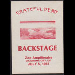 Grateful Dead 7/5/1981 Oklahoma City Backstage Pass | 150 | 150 | |