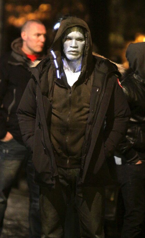 Jamie Foxx pictured wearing his full Electro make up on the set of 'The Amazing Spider-Man 2' movie in Times Square.Pictured: Jamie FoxxRef: SPL526890 160413 Picture by: Jose Perez / Splash NewsSplash News and PicturesLos Angeles: 310-821-2666New York: 212-619-2666London: 870-934-2666photodesk@splashnews.com | 384 | 628 | |