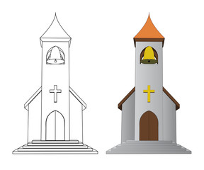 color in and line drawing church with bell vector | 288 | 240 | |