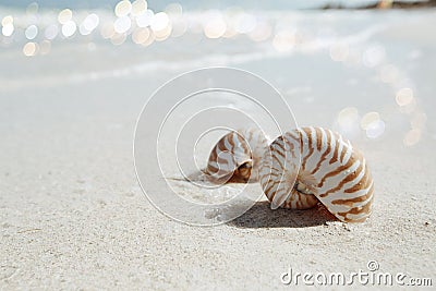 Nautilus shell in blue sea wave, shallow dof | 400 | 267 | |