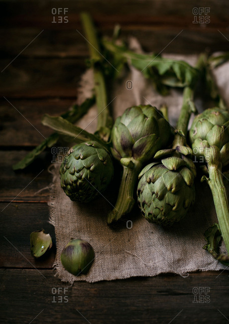 Raw artichokes on a cloth | 384 | 542 | |