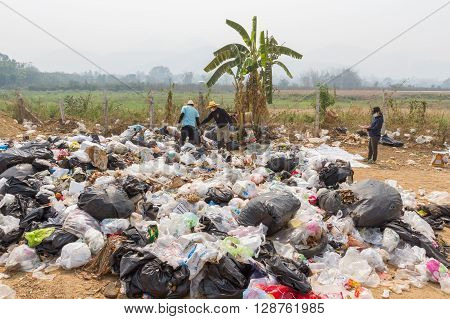 PAI, THAILAND - April 10, 2016 : Councils officer prepare Screeners in the garbage disposal pond in Pai,Thailand | 450 | 319 | |