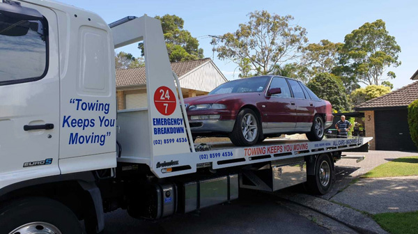 A 90's model holden being picked up by a tilt tray tow truck | 600 | 336 | |