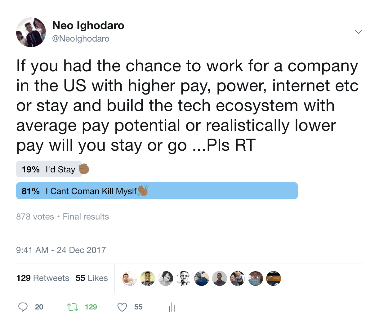 15,910 | [DISCUSSION] Thoughts on the growth of tech in Nigeria | About the cost of the growth of tech in Nigeria | 0 | 2018-01-03T10:13:33 | https://dev.to/neo/discussion-thoughts-on-the-growth-of-tech-in-nigeria-2pni | tech, nigeria, remote, discuss | ---