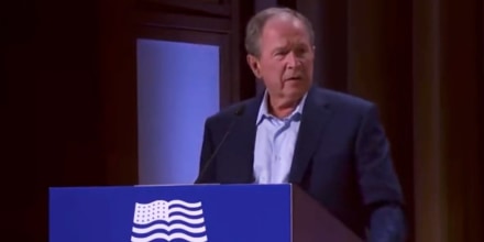 6,015,151 | <|image|>President George W. Bush speaking on Putin's invasion of Ukraine in Dallas on May 18, 2022. | {"uid": "61bb7383e607298e600405f19b34d77e", "original_width": 440, "original_height": 220, "clip_b32_similarity_score": 0.28076171875, "clip_l14_similarity_score": 0.288330078125, "face_bboxes": [[0.5362520217895508, 0.0889858528971672, 0.6464749574661255, 0.40066638588905334]], "sha256": "8936a9f8249e52d1d71a7e4c5b897cc997671d3a72fbe0508ccccbaccdbc7847"} | |