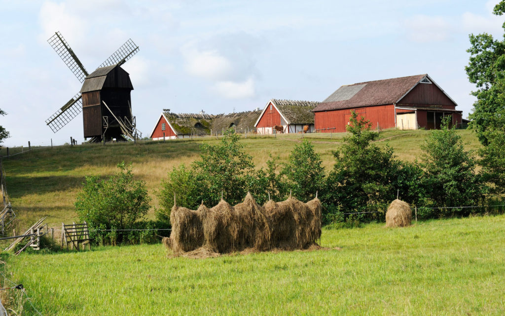 <|image|>Vyn över Östarps möllan och möllegården.