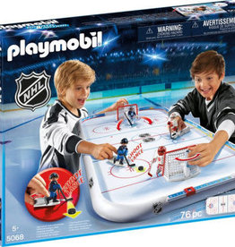 60,000,117 | <|image|>Two boys are playing with the Playmobil NHL Hockey Arena, an ice hockey game. | {"laion_2b": "Playmobil NHL Hockey Arena", "laion_coco": "Two boys playing with an ice hockey game."} | |