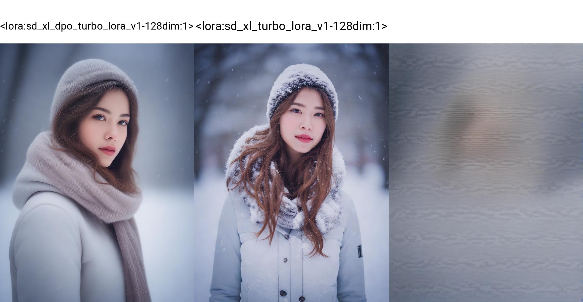 1-added LoRA of SD XL DPO, NOT TURBO(usual settings for SD XL with this LoRA)