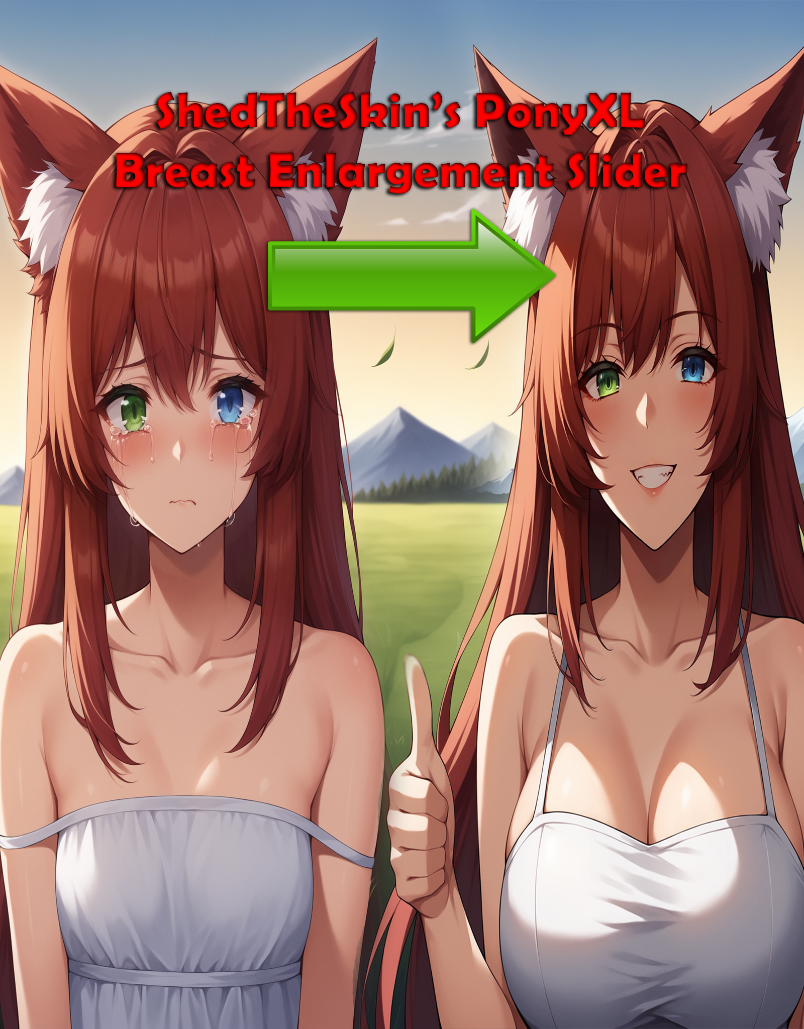 👇👀 Read me! 👇👀This is a unipolar slider for PonyXL. The purpose of this slider is to increase the subject's breast size in a controllable fashion with the LoRA input values. Higher LoRA input values result in larger breasts.