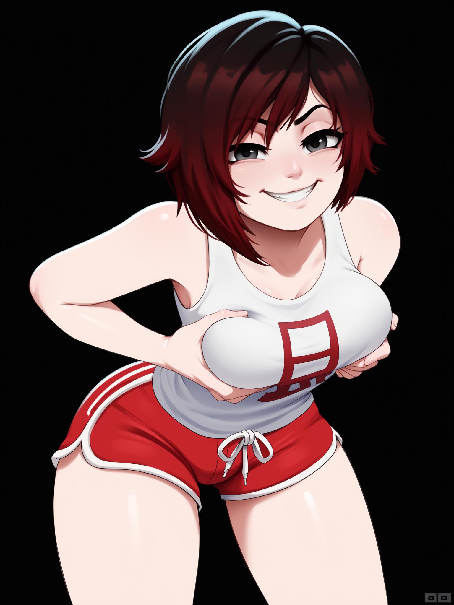 <lora:ruby-rose-ponyxl-lora-nochekaiser:1>, ruby rose, short hair, black hair, red hair, grey eyes,