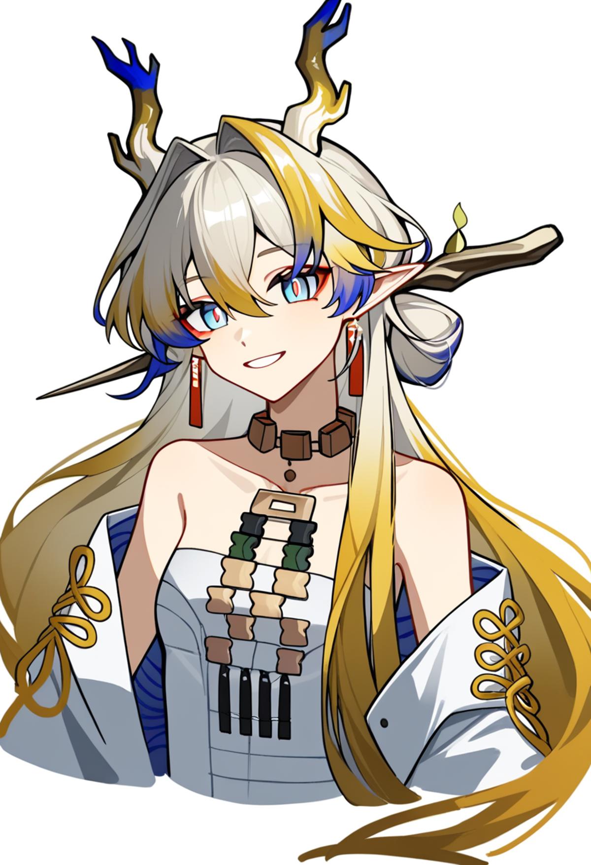 Vale: weissvale, scar across eye, ponytail, hair ornament, tiara, white jacket, cropped jacket, high collar, long sleeves, short dress, white dress, earrings, necklace
