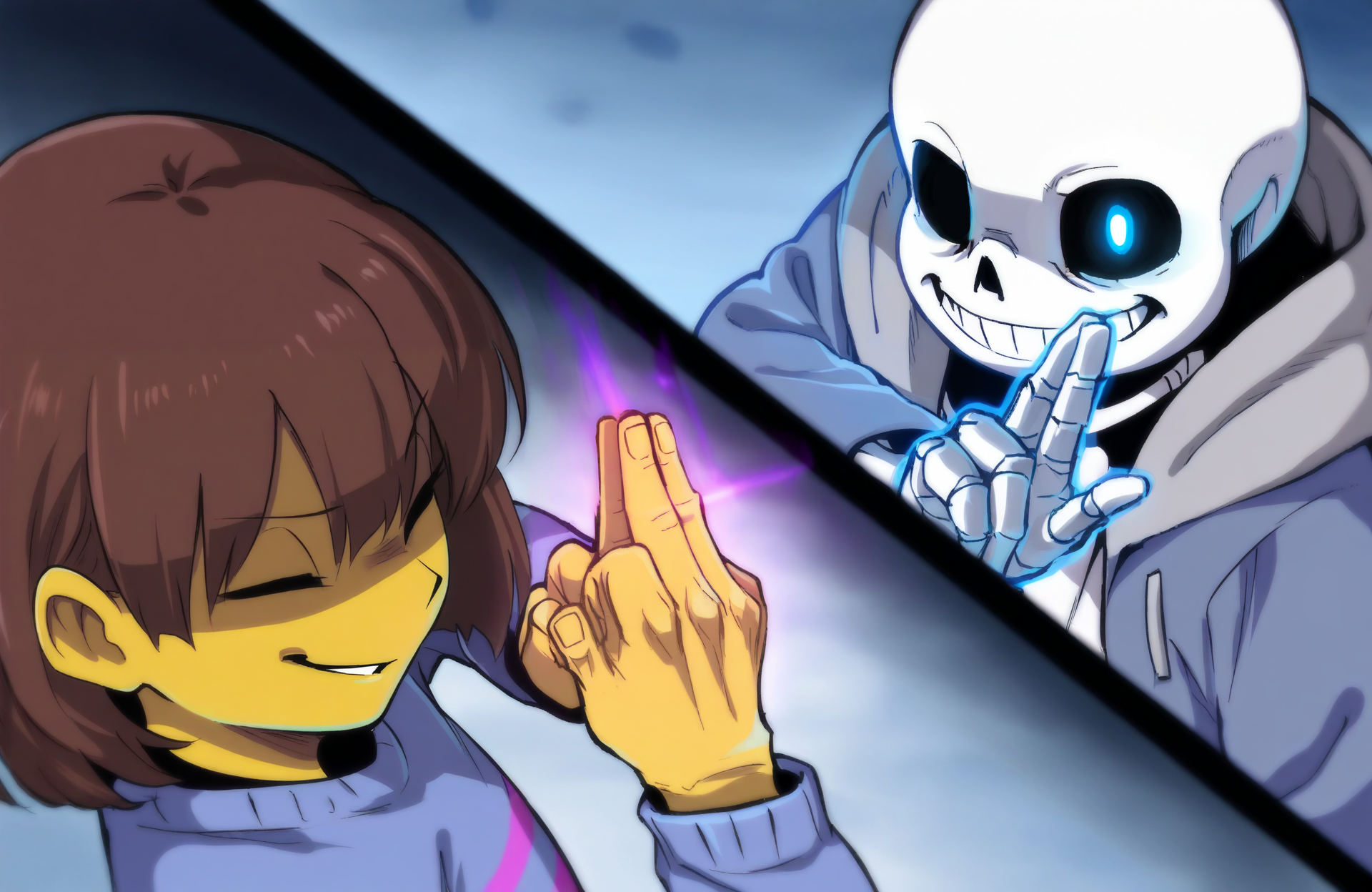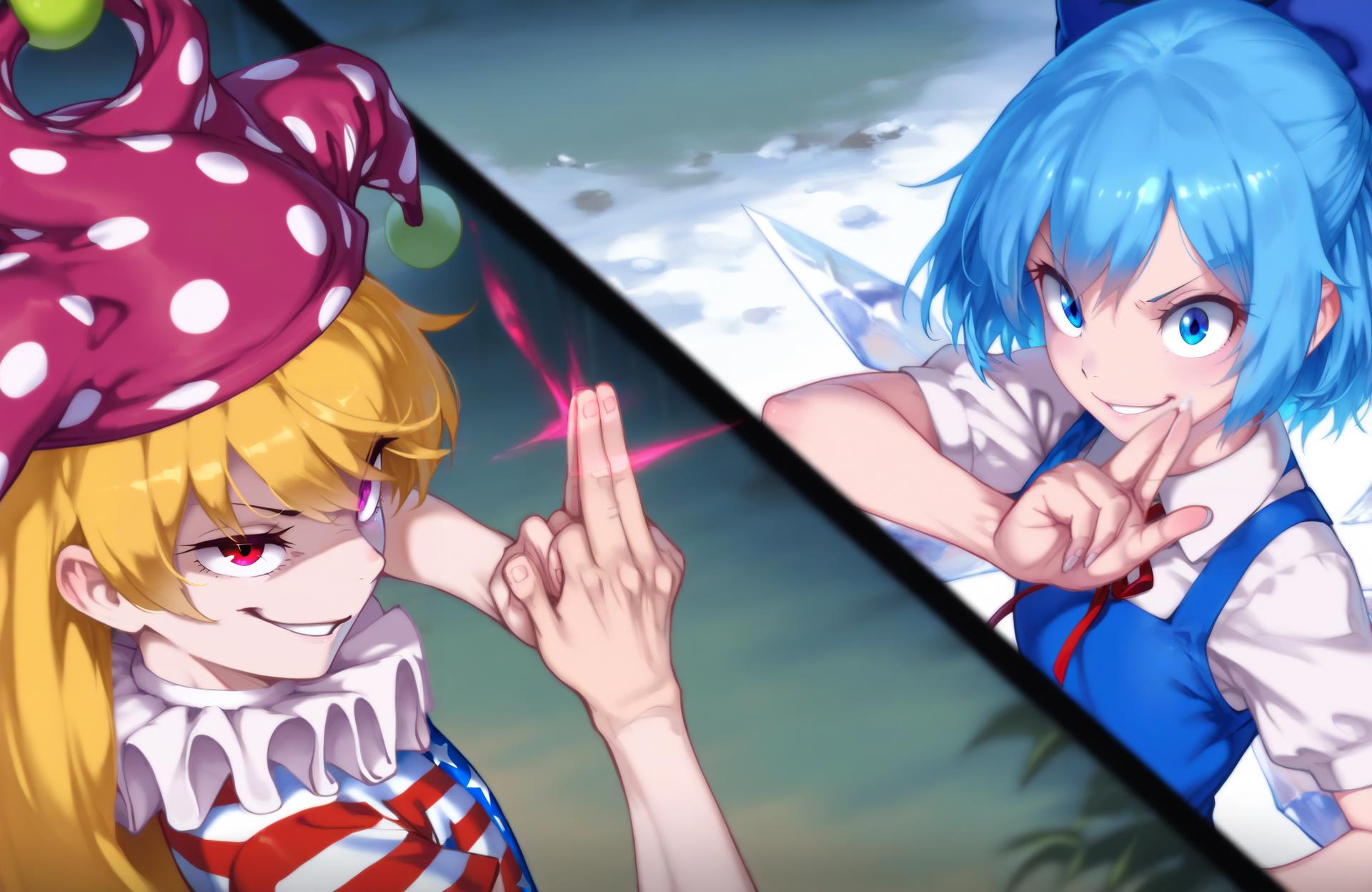 domain clash, split screen, character_1, character_2Extras: