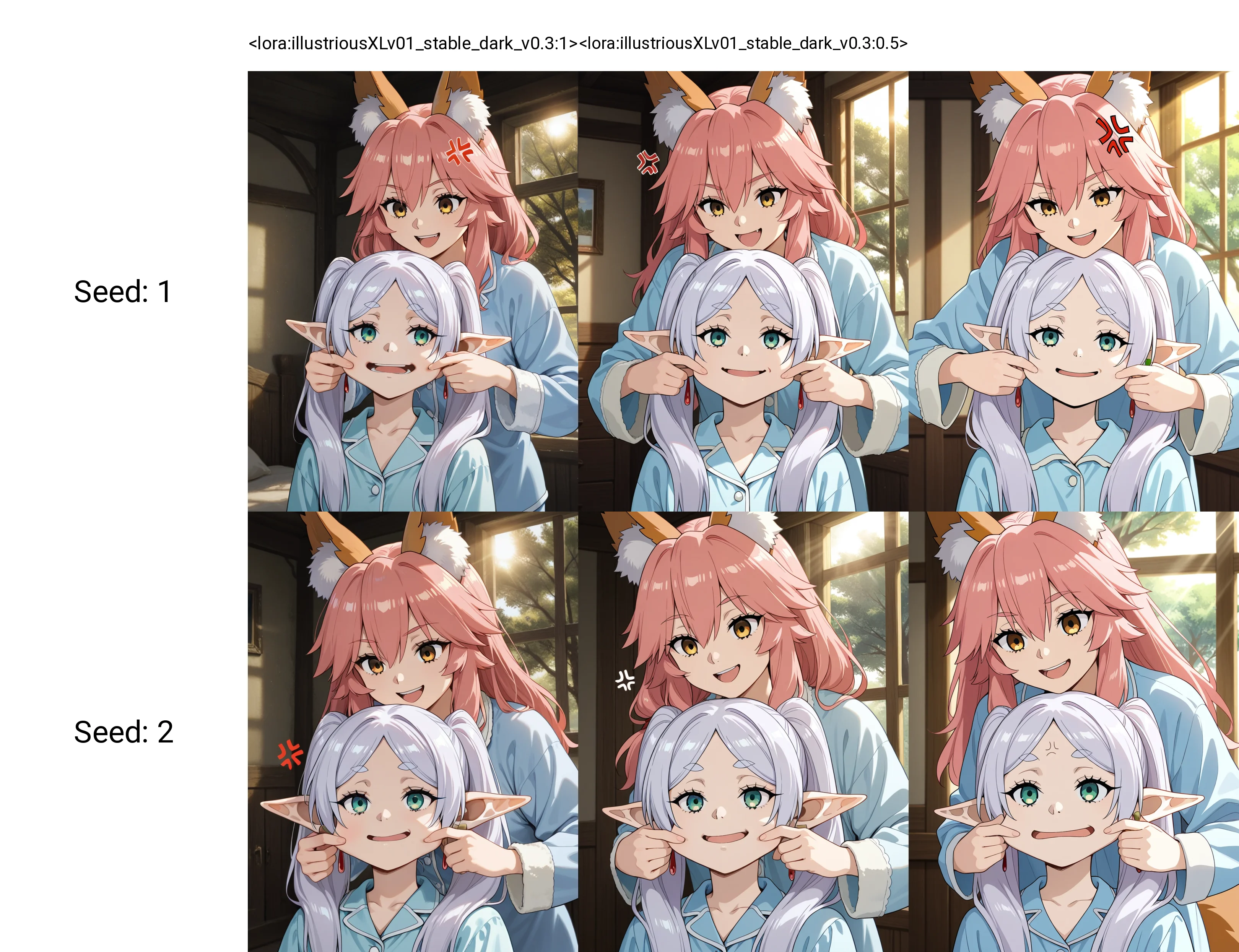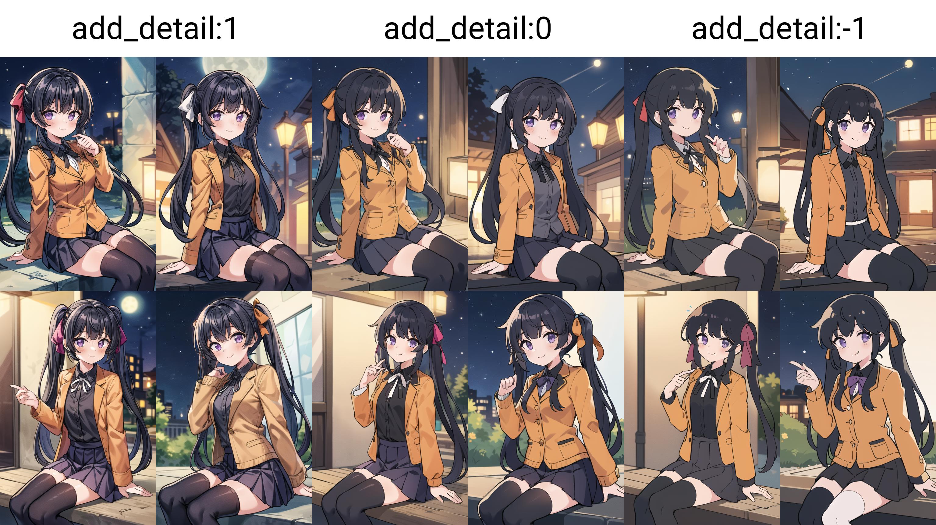 Same new texture and lighting dataset as mentioned in ani40z v0.4 below. Brings RTX level natural lighting and super detailed texture to 2D characters. Tags that related to some kind of light sources, such as "lamp", "daylight", "soft lighting", may bring better lighting effect.