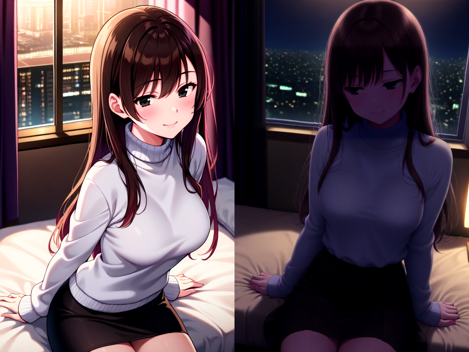 More training images. Then finetuned again on a small "wallpaper" dataset (Real wallpapers, the highest quality I could find. Only ~100 images for now). More improvements in details (noticeable in skin, hair) and contrast.