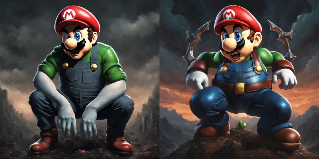 hyperrealistic death metal album cover featuring edgy moody realistic (human Super Mario)++, edgy and moody (cfg = 13, seed = 30416580)