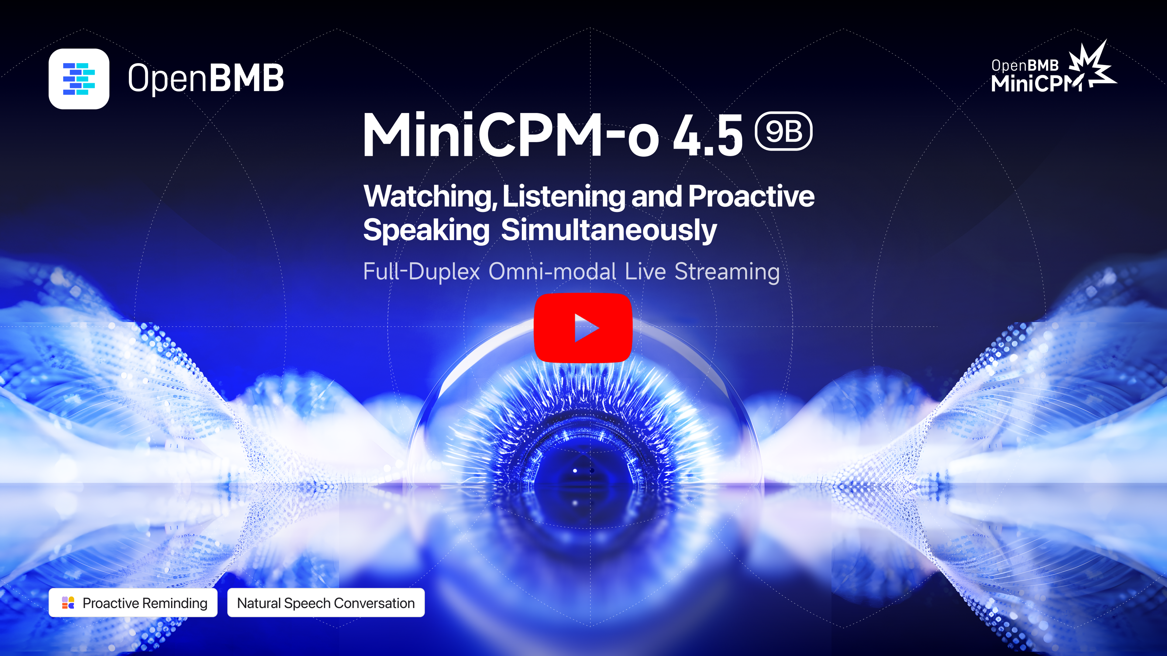 ๐ฌ New Full-Duplex and Proactive Multimodal Live Streaming Capability. As a new feature, MiniCPM-o 4.5 can process real-time, continuous video and audio input streams simultaneously while generating concurrent text and speech output streams in an end-to-end fashion, without mutual blocking. This allows MiniCPM-o 4.5 to see, listen, and speak simultaneously, creating a fluid, real-time omnimodal conversation experience. Beyond reactive responses, the model can also perform proactive interaction, such as initiating reminders or comments based on its continuous understanding of the live scene.