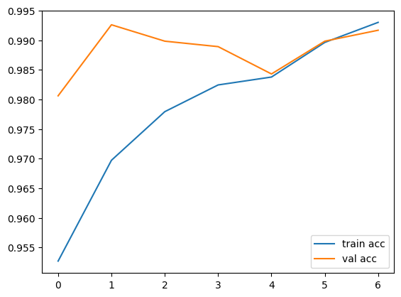 Training and validation accuracy both increase steadily and reach high performance (~98β99%).