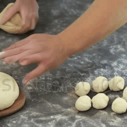 2. Dough starts smooth, swells and browns in the oven, finishing as fully expanded, baked bread.
