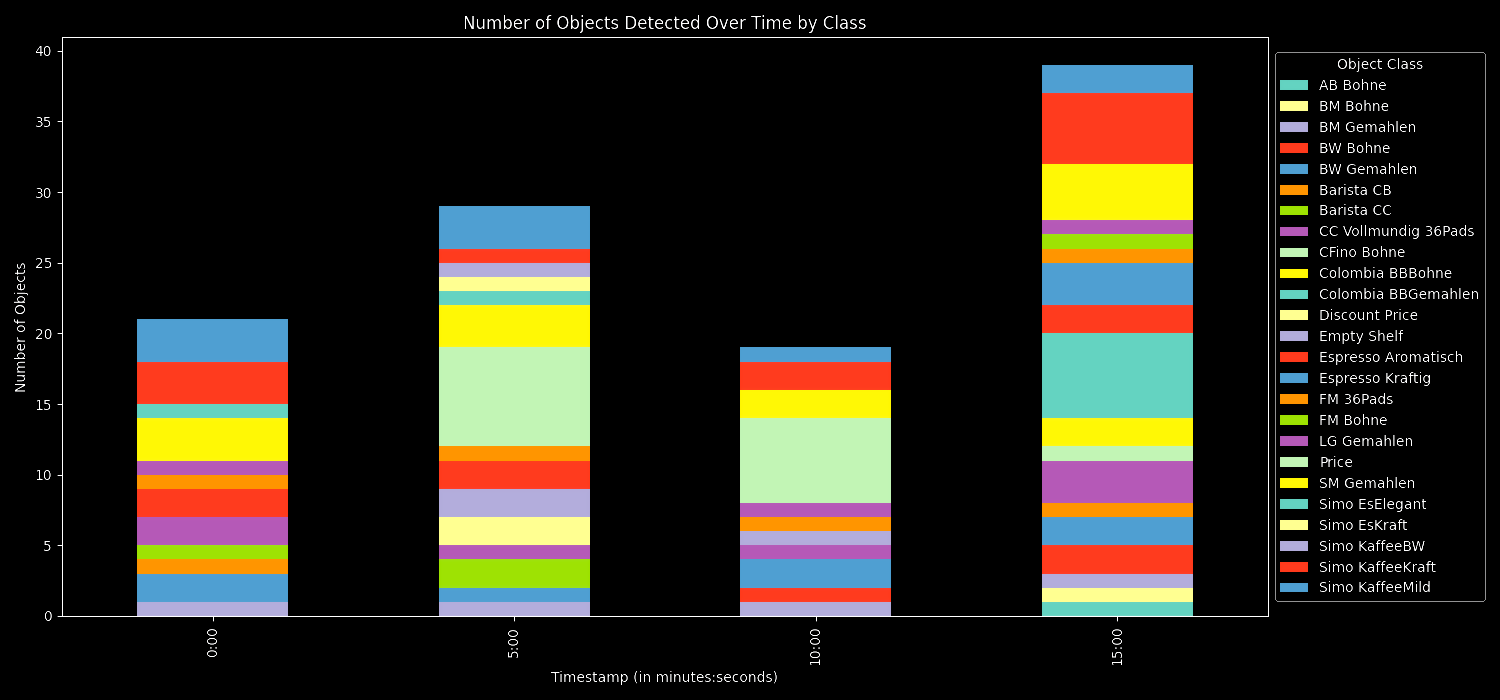 Roboflow's inference server to analyze video streams. This project extracts insights from video frames at defined intervals and generates informative visualizations and CSV outputs.