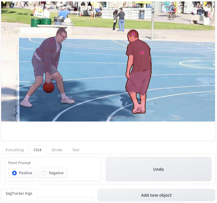 - `Point Prompt`: you can select objects to track by clicking on the image with positive and negative points.