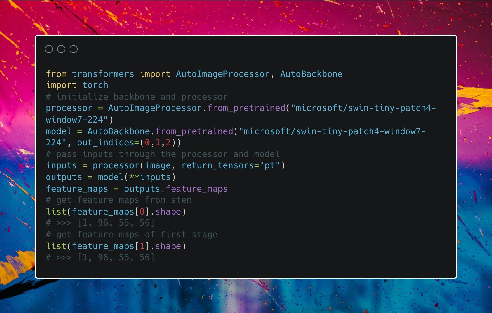 Implementing this is cumbersome, so 🤗 transformers has an API for this: Backbone!