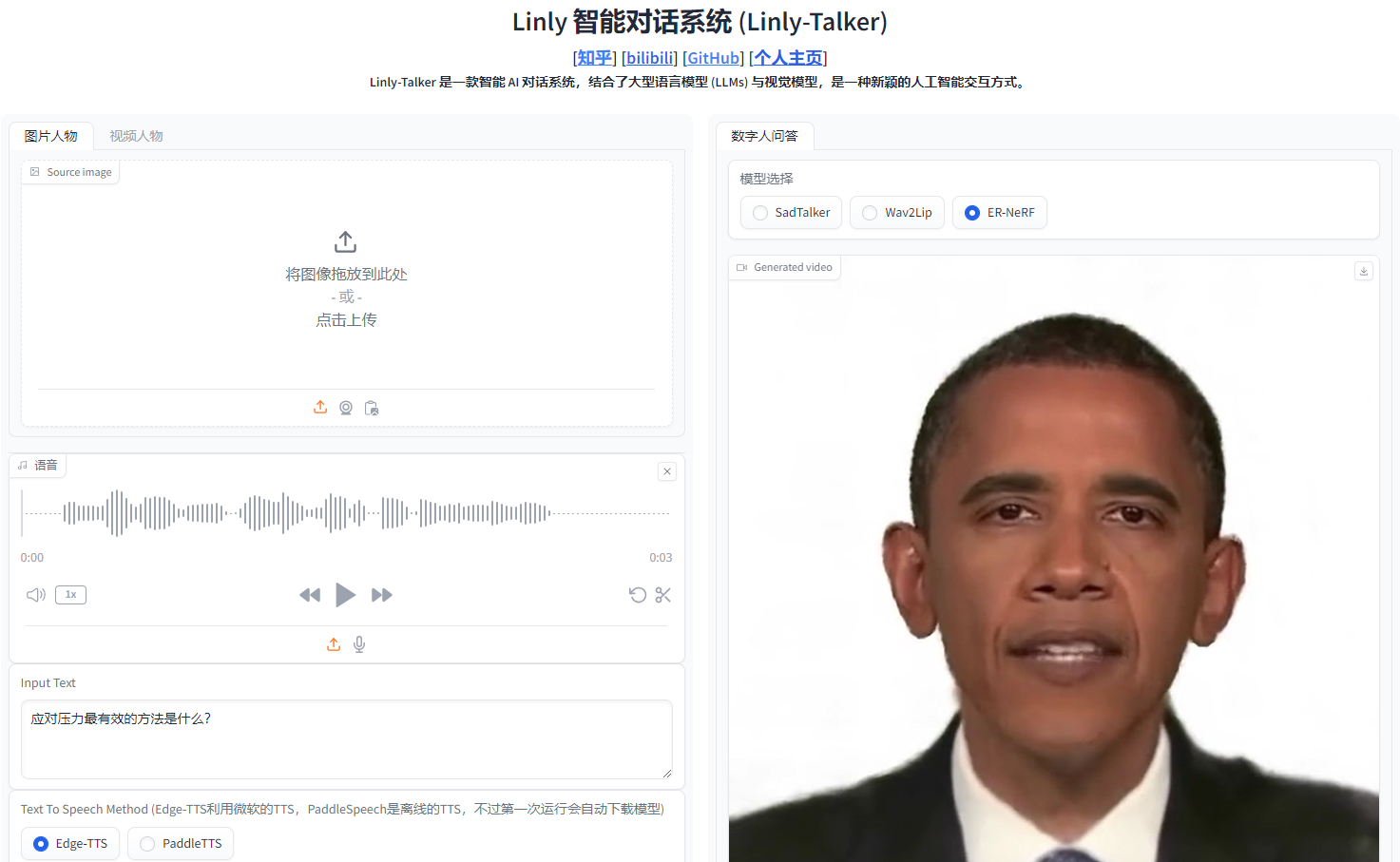 I have recorded a series of videos on Bilibili, which also represent every step of my updates and methods of use. For detailed information, please refer to Digital Human Dialogue System - Linly-Talker Collection.