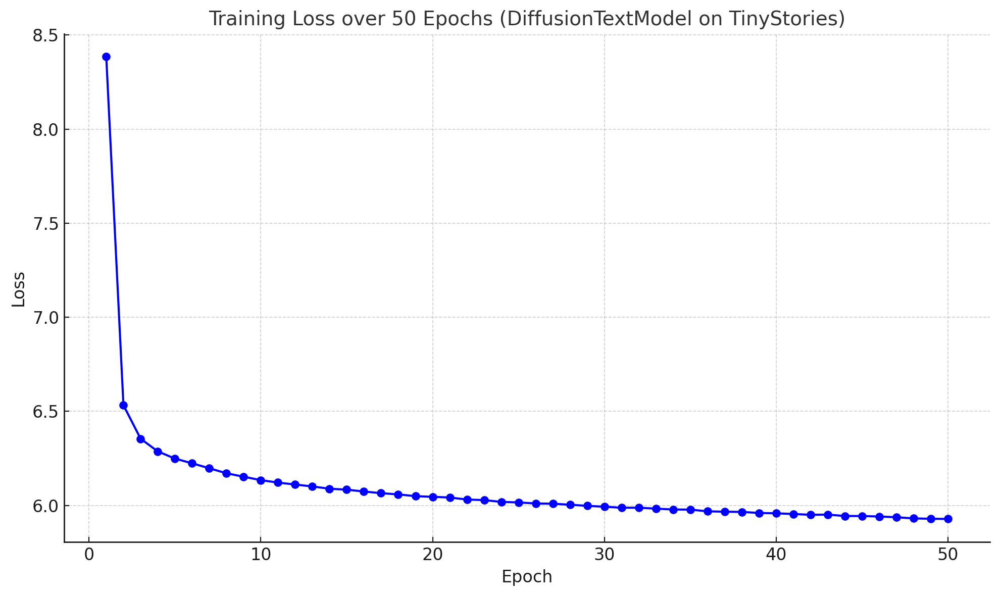 --- tags: - model_hub_mixin - pytorch_model_hub_mixin --- # Diffusion Text Demo Model A prototype **diffusion-based language model** implemented in PyTorch and trained on a subset of the [**TinyStories** dataset](https://huggingface.co/datasets/roneneldan/TinyStories). This model demonstrates iterative denoising for text generation, conditioned on an input prompt. --- ## Training Details * **Dataset:** 50,000 samples from [TinyStories](https://huggingface.co/datasets/roneneldan/TinyStories) * **Epochs:** 50 * **Batch size:** 16 * **Learning rate:** 1e-5 * **Diffusion steps (T):** 10 * **Tokenizer:** Naive whitespace (for demo purposes) --- ## 📉 Training Loss | Stage | Start Loss | End Loss | | ------------ | ---------- | -------- | | Epochs 1–10 | 8.38 | 6.13 | | Epochs 11–20 | 6.12 | 6.04 | | Epochs 21–50 | 6.04 | 5.92 | **Final Loss (Epoch 50): 5.92** ### Loss Curve --- ## Usage ### Install Requirements ```bash pip install torch huggingface_hub ``` ### Load the Model ```python import torch from modeling_diffusion import DiffusionTextModel # Load directly from Hub model = DiffusionTextModel.from_pretrained("yasserrmd/diffusion-text-demo") model.eval() device = "cuda" if torch.cuda.is_available() else "cpu" model.to(device) ``` --- ### Vocabulary Initialization ```python import json from huggingface_hub import hf_hub_download vocab_file = hf_hub_download("yasserrmd/diffusion-text-demo", "vocab.json") with open(vocab_file) as f: vocab = json.load(f) # Reverse mapping (IDs → tokens) id_to_word = {int(v): k for k, v in vocab.items()} # Special IDs pad_id, mask_id = vocab["[PAD]"], vocab["[MASK]"] ``` ### Inference with Prompt ```python def generate_with_prompt(model, input_text, max_length, T=10): model.eval() input_tokens = input_text.split() input_ids = [vocab.get(tok, mask_id) for tok in input_tokens] seq = torch.full((1, max_length), mask_id, dtype=torch.long, device=device) seq[0, :len(input_ids)] = torch.tensor(input_ids, device=device) for step in range(T, 0, -1): with torch.no_grad(): logits = model(seq, torch.tensor([step], device=device)) probs = torch.softmax(logits, dim=-1) for pos in range(len(input_ids), max_length): if seq[0, pos].item() == mask_id: seq[0, pos] = torch.multinomial(probs[0, pos], 1) ids = seq[0].tolist() if pad_id in ids: ids = ids[:ids.index(pad_id)] return " ".join(id_to_word[i] for i in ids) print(generate_with_prompt(model, "the cat", max_length=50)) ``` --- ## Use in a Hugging Face Space ```python import gradio as gr from modeling_diffusion import DiffusionTextModel model = DiffusionTextModel.from_pretrained("yasserrmd/diffusion-text-demo") model.eval() def infer(prompt): return generate_with_prompt(model, prompt, max_length=50) gr.Interface(fn=infer, inputs="text", outputs="text").launch() ``` --- ## References This model was inspired by several works on diffusion for text: * Li et al. (2022) – [**Diffusion-LM Improves Controllable Text Generation**](https://arxiv.org/abs/2205.14217) * Austin et al. (2021) – [**Structured Denoising Diffusion Models in Discrete State-Spaces (D3PM)**](https://arxiv.org/abs/2107.03006) * He et al. (2023) – [**DiffusionBERT: Improving Generative Masked Language Models with Diffusion**](https://arxiv.org/abs/2211.15029) * Gong et al. (2023) – [**DiffuSeq: Sequence to Sequence Text Generation with Diffusion Models**](https://arxiv.org/abs/2211.11694) * Nie et al. (2025) – [**Large Language Diffusion Models (LLaDA)**](https://arxiv.org/abs/2501.04687) --- ⚠️ **Disclaimer:** This is a research prototype. Generations may not be coherent, since the model is trained with a simple tokenizer and on a limited dataset subset. For production-quality results, train longer with a subword tokenizer (e.g., GPT-2 BPE) and scale model size. ---